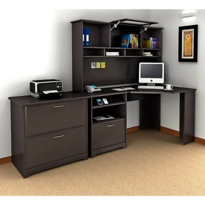 Cabot 72w L Shaped Computer Desk With Hutch And Drawers In Espresso Oak Bush Furniture Cab053epo